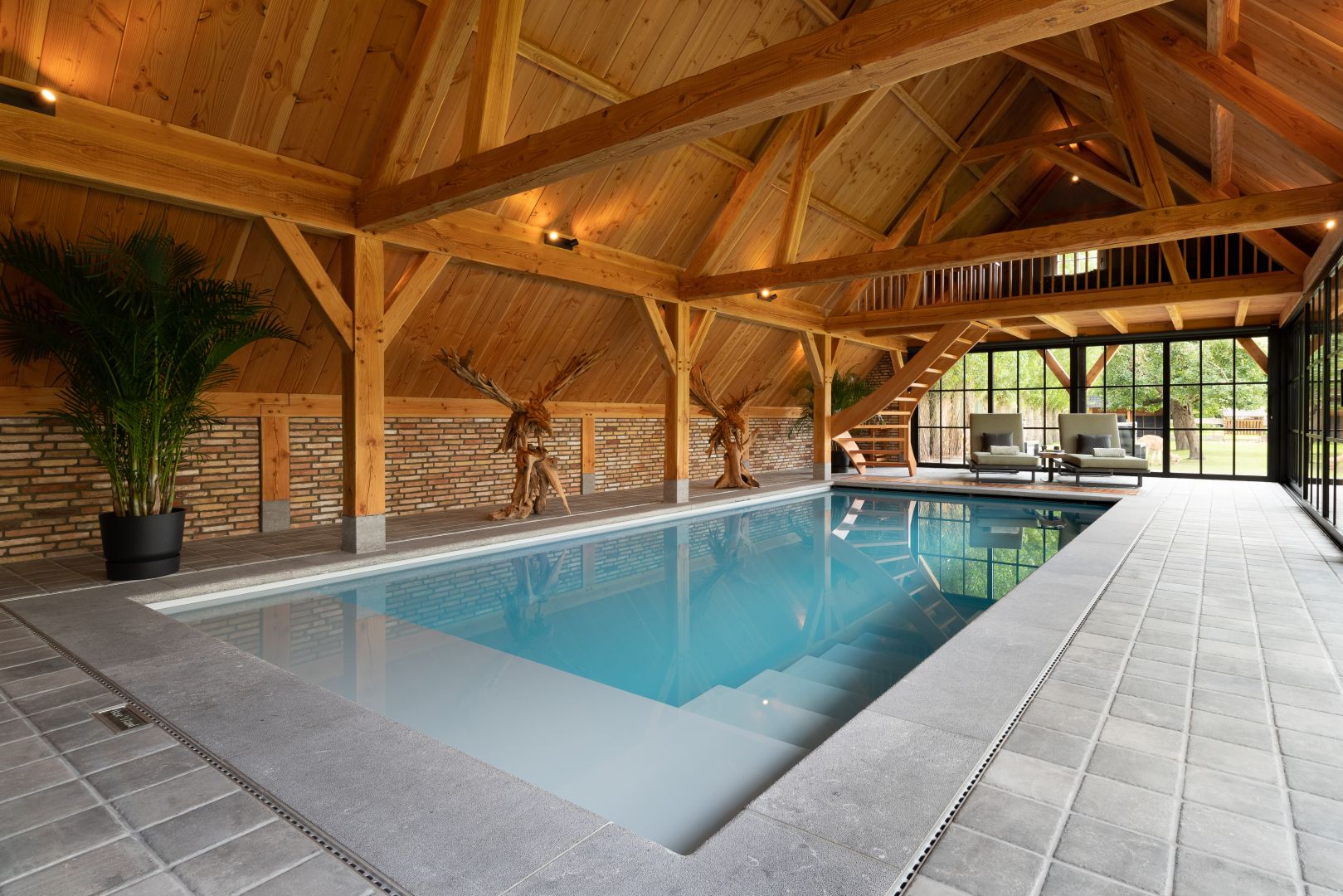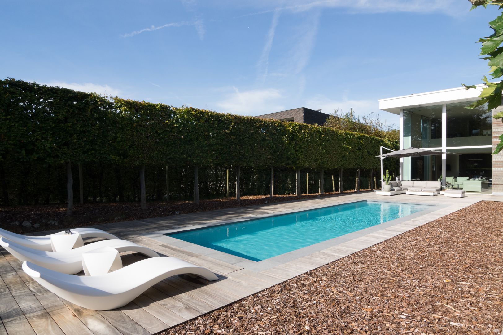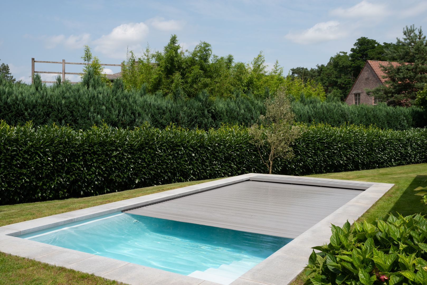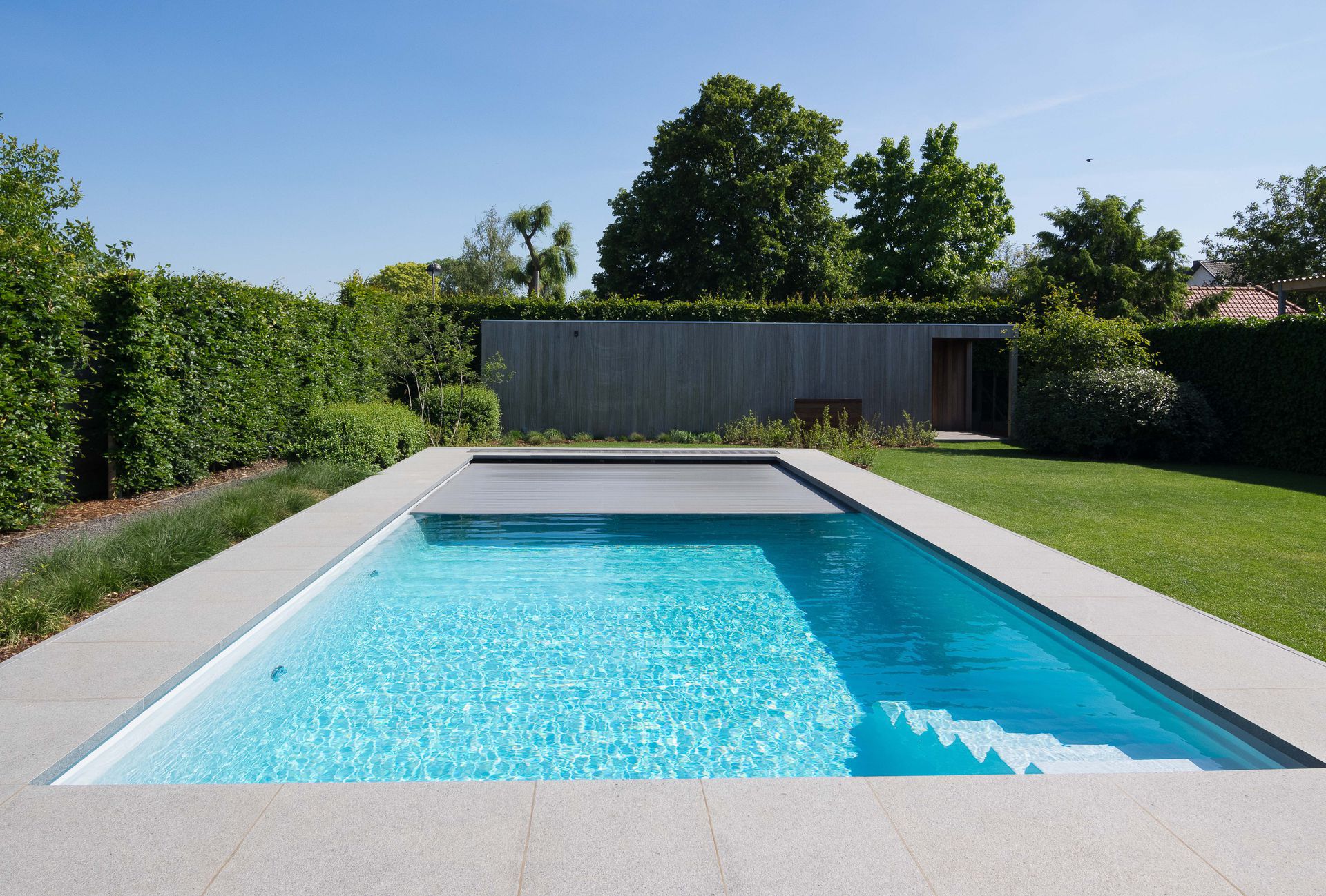 Wij zorgen voor het uitgraven, het volledig grondwerk, het betonwerk, het plaatsen van het zwembad, de installatie van de techniek inclusief circulatie- en warmtepomp, filtersysteem, automatische waterbehandeling, de randtegels en een automatisch zwembadrolluik geïntegreerd in het zwembad.